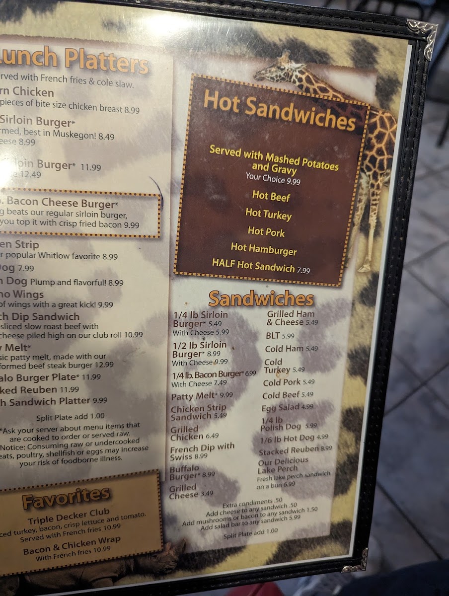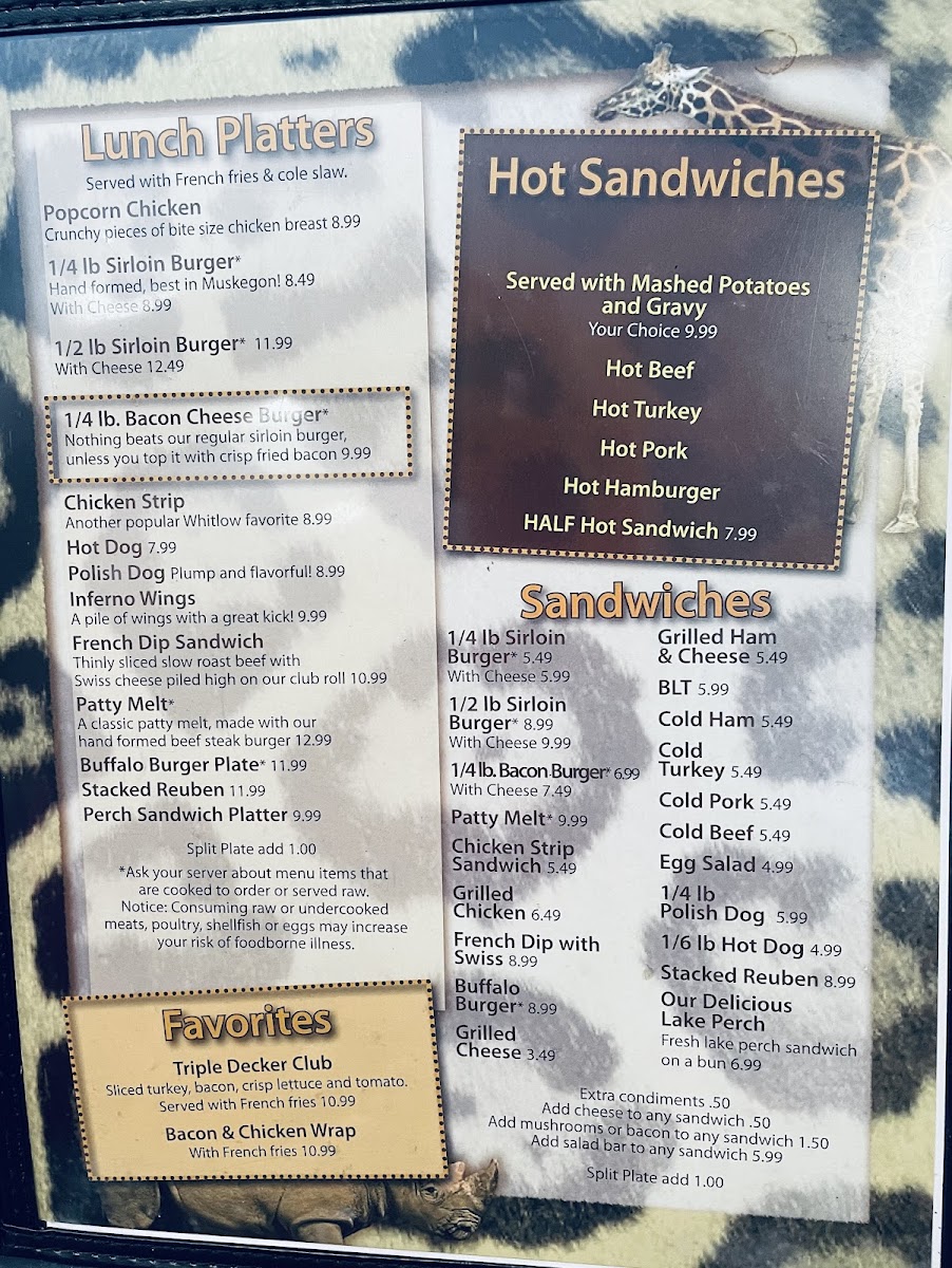 Welcome to Whitlow's Forerunner, a charming eatery located at 4610 Airline Rd, Muskegon, MI. This iconic spot perfectly embodies the essence of comfort food in a nostalgic setting. The menu highlights a variety of mouthwatering appetizers such as cheesy Cheese Sticks and crispy Onion Rings, catering to every craving.